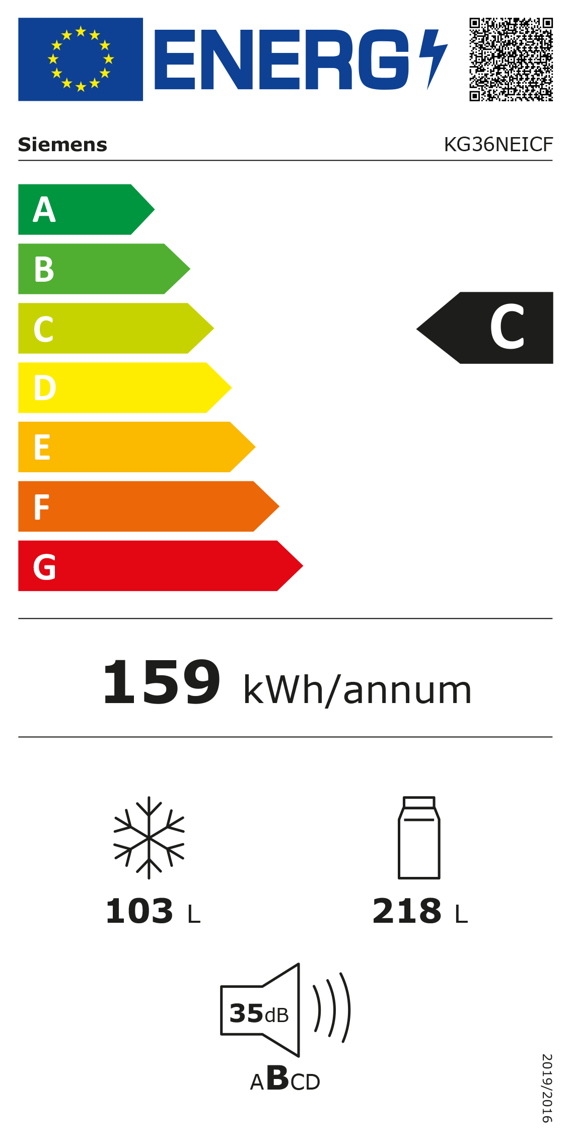Folgende Grafik zeigen Ihnen die verschiedenen Bestandteile eines Energielabels für Kühl- und Gefrierkombinationen. Klicken Sie auf die jeweiligen Markierungen und erfahren Sie, welche Information sich dort verbirgt.